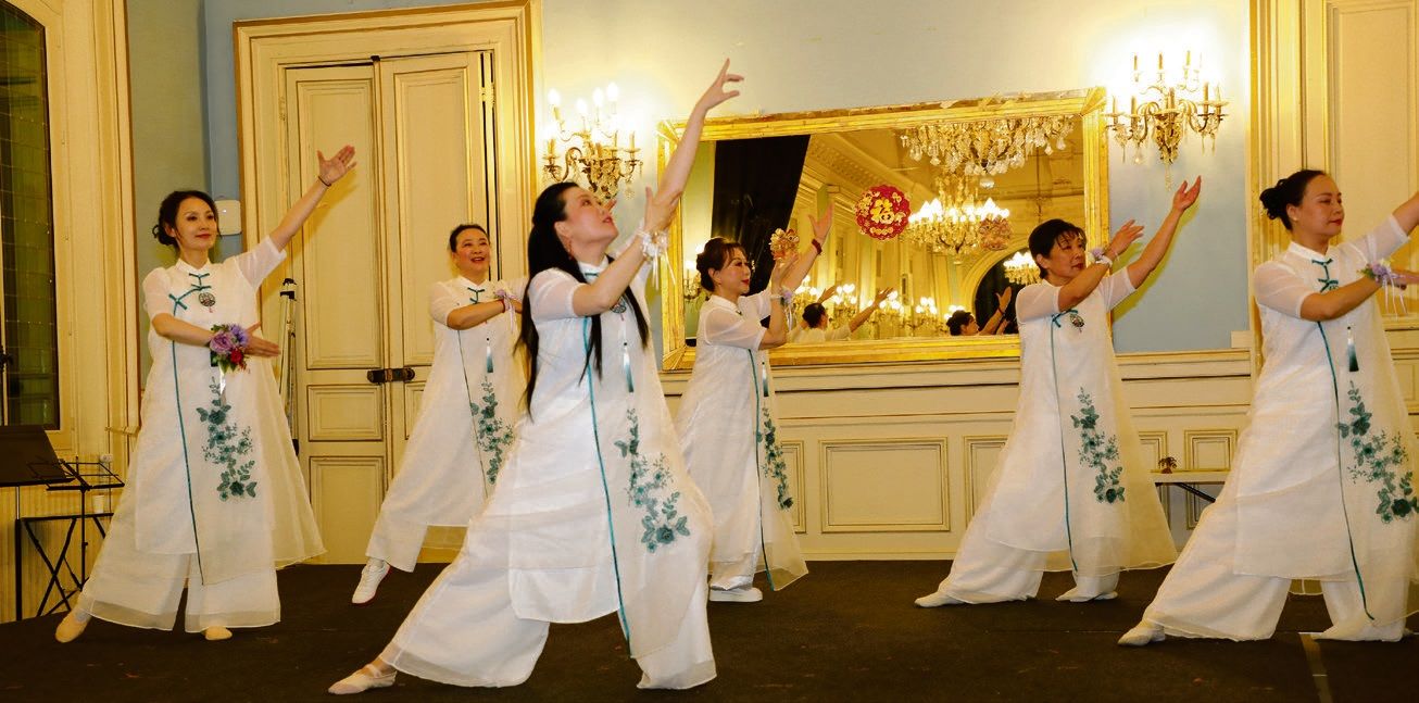 晚会围绕“文化为桥、艺术为媒”的主题,晚会节目精彩纷呈,众多旅法文艺团体倾情出演。瑜伽、京剧、豫剧、黄梅戏、民族器乐音乐演奏、贵州民族舞蹈、太极、儿童戏曲变脸、儿童合唱和成人合唱等节目轮番上演。《舞韵瑜伽》以创新形式将东方瑜伽哲思与舞蹈艺术相结合,展现身心合一、刚柔并济的东方智慧,体现中华文化崇尚和谐、中正平衡的精神追求。旅法京剧爱好者戴天华、郭金荣、胡越乔等表演的京剧节目以精湛的唱腔与表演艺术展现中国传统戏曲魅力,传递忠义精神与礼乐文化内涵。巴黎室内乐合唱团演唱中法歌曲,由中法文化艺术交流协会表演的旗袍秀《入画江南》,展现中国服饰之美。太极拳表演者动作舒展流畅,展现中华武术“以静制动、内外兼修”的文化精髓,体现中华传统哲学追求和谐共生的价值理念,受到现场观众热烈欢迎。