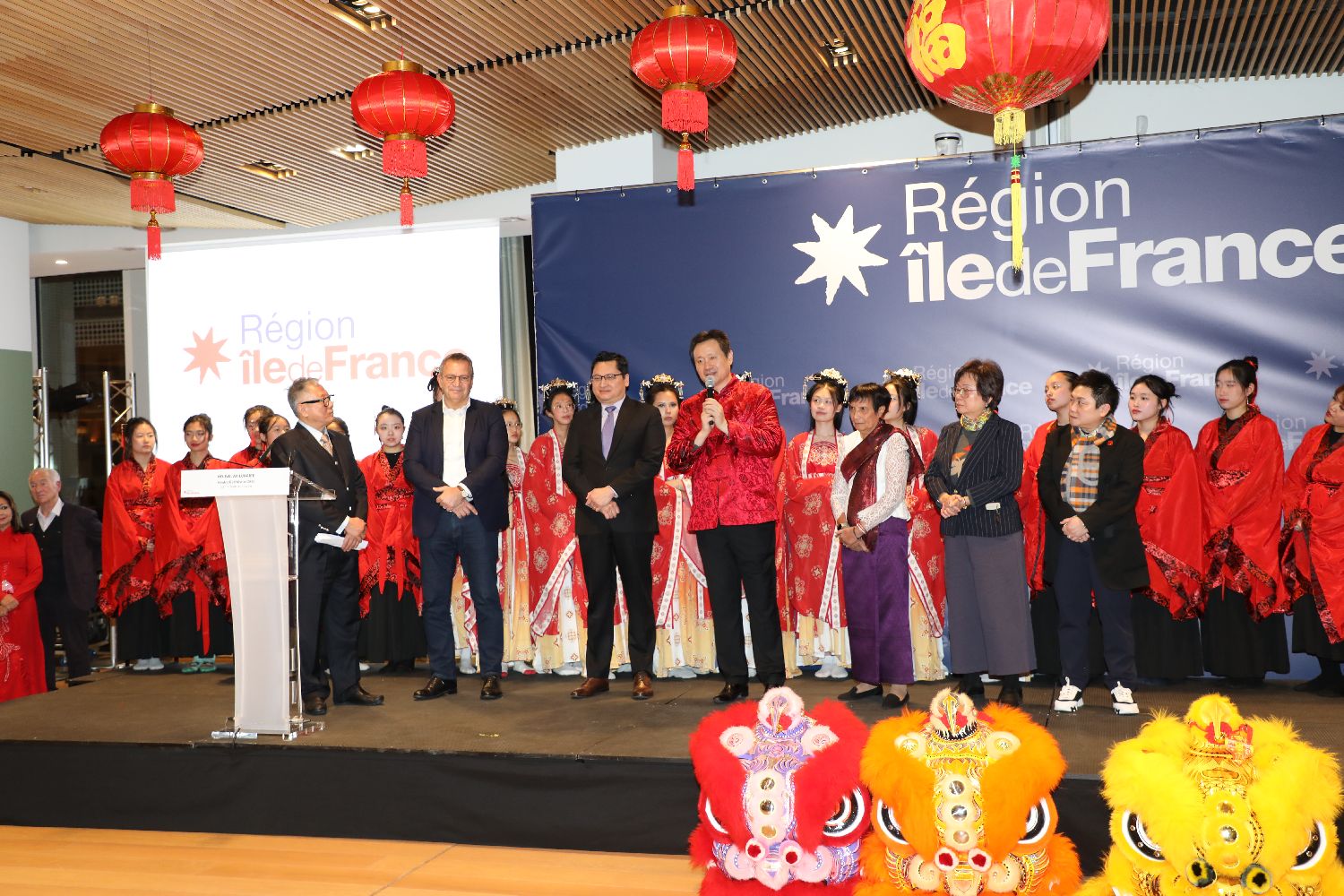 当晚,大区议会内外张灯结彩,龙腾狮跃,洋溢着浓厚的节日氛围。