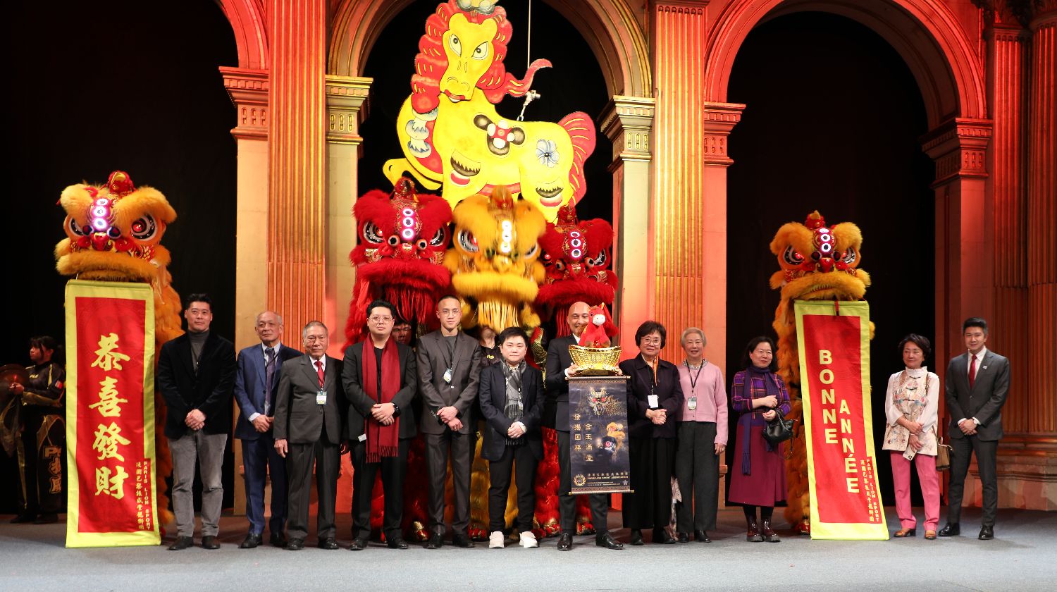【欧洲时报记者黄冠杰巴黎报道】2月23日晚,由巴黎市政府联合法国华裔互助会、法国潮州会馆、华裔融入法国促进会(简称华进会)共同举办的巴黎市政府马年春节招待会在市政大厅举行。中国驻法使馆郭晓林公参、领侨处副主任张慧舞,巴黎市长代表、负责国际关系的副市长纳查(Arnaud NGATCHA),巴黎13区区长代表、区议员陈家辉,主办方法国华裔互助会会长郑江秀文、执行会长郑桂珊(Navy Trinh),法国潮州会馆会长许葵等会长团成员,法国华进会代表陈成章(Alexandre Rattanavan)、黄舟(JoéSengmany)等以及旅法侨界代表与1500余法华民众共庆马年春节。