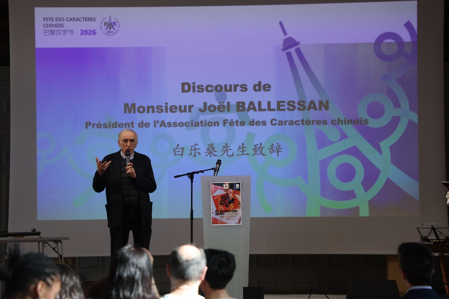 根据安排,本次巴黎汉字节共分为两天,2月26日白乐桑还将在巴黎中国文化中心举办主题为《中国文字和它的诗性功能》的讲座。