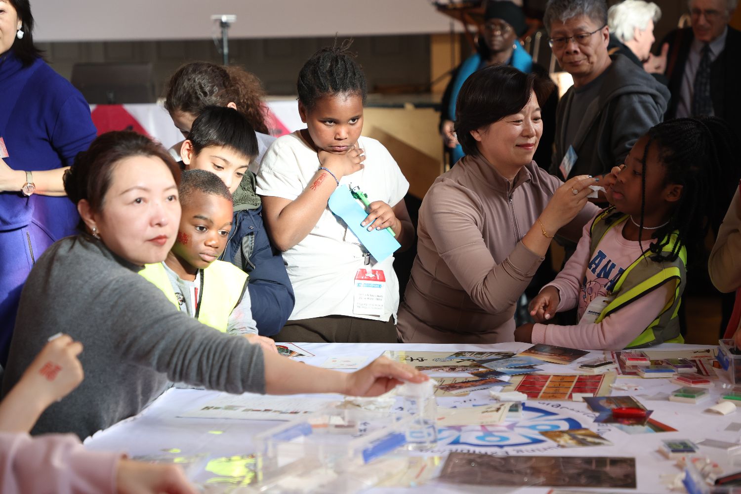 活动现场,汉字节协会搭建了与马年春节相结合的展览、书法体验、汉字初学、剪字体验等工坊,多个从事中法文化交流的企业、协会和单位也参与其中,提供更多元的汉字文化和中国传统文化体验。前来参加活动的成人及儿童在现场纷纷亲自上手,体验书写毛笔字、剪纸、绘画等中国传统文化的独特魅力。由于此次活动举办正值周三下午,因此13区多所学校的学生也在老师的带领下来到现场参加活动,使得现场气氛更加热烈。