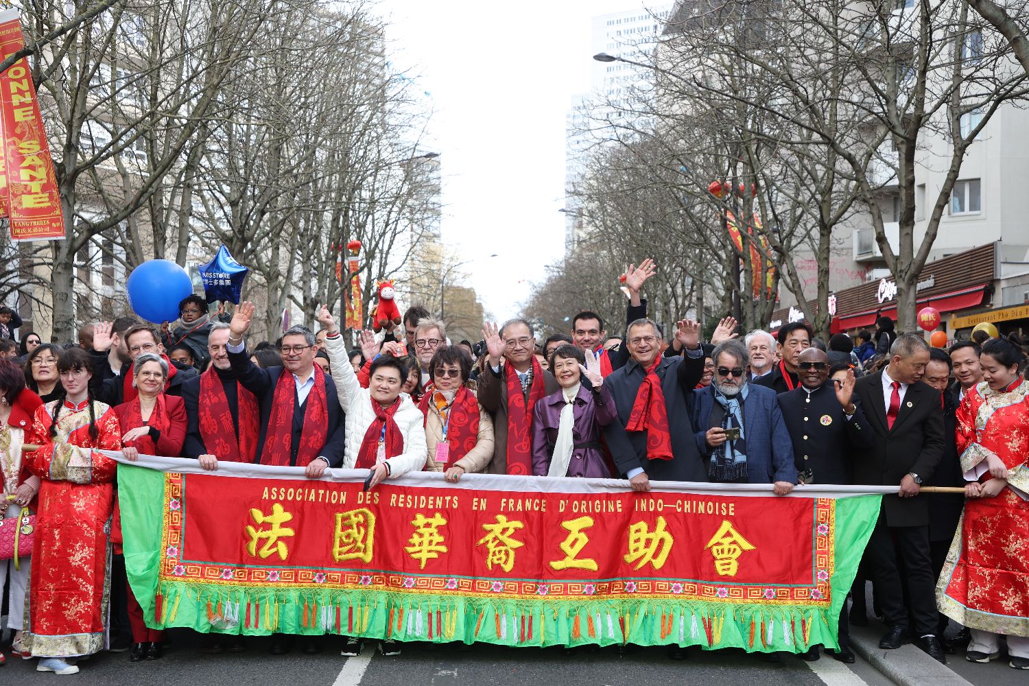 郑桂珊(Navy Trinh)在致辞中表示,郑辉是巴黎13区春节嘉年华彩妆大游行的发起者,他希望通过这样一场游行为每家每户带来福祉和庇佑,也为所有商户带来繁荣和好运。起初,街上的参与者只有寥寥数人,多年以后,人数慢慢增加至几十人、几百人,再到几千人。这一切都源于对自身文化的热爱、对传统的自豪以及分享美好时光的喜悦。今天,在包括香榭丽舍大街在内的很多区域,都能看到人们庆祝中国新年,令人倍感欣慰。我们衷心感谢法国对我们社区的热情欢迎和友好对待,以及对这一我们无比珍视的传统节日的认可和尊重。