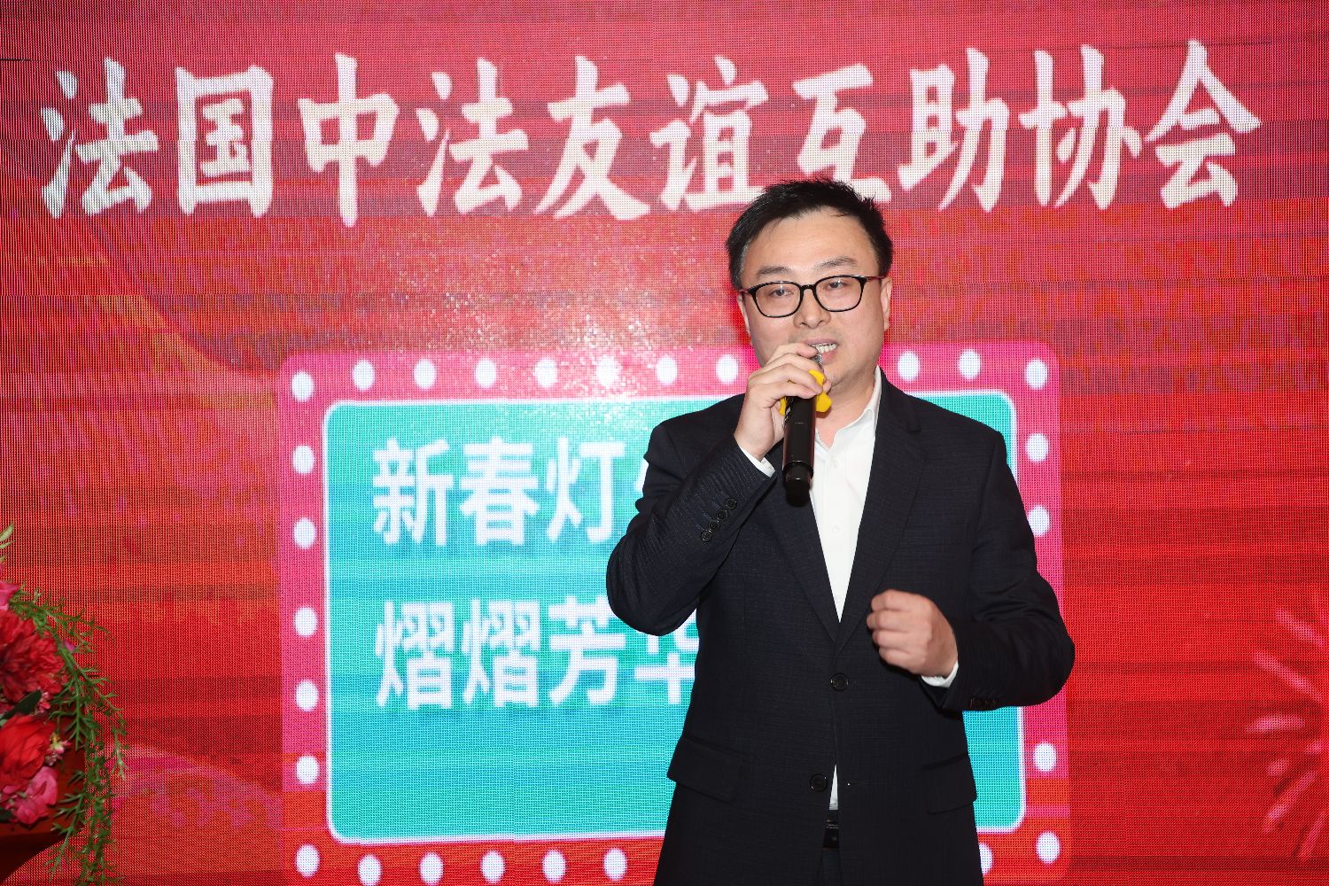 何建兴在致辞中,首先向出席活动的全体人员送上节日的问候并致以谢意。何建兴表示,我从2024年担任会长到现在,已经快接近三年。这三年当中,我非常感谢会内的每一位兄弟姐妹,特别要感谢他们的家人,我代表协会的成员,向他们的家人表示感谢。我也非常感恩这么多年来会长团对我的支持,同时也非常感谢欧拜赫维利耶市政府对协会的支持,正是由于市政府的支持,春节庆祝活动才能圆满举办。元宵节和“三八”妇女节即将到来,我们三节同庆,希望大家相聚开心,期待我们明年再聚。