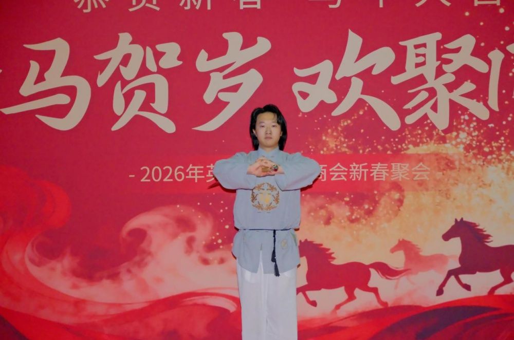 致辞环节后,文艺演出正式开始。古筝独奏《银河碧波》率先登场,悠扬旋律营造出典雅的东方意境;随后,中国功夫表演《太乙拂尘功》刚柔并济,赢得阵阵掌声。配乐诗朗诵《过年了》以温暖的语言唤起节日记忆,而舞蹈《云宫迅音》以灵动的舞姿为现场增添了活跃气氛。演出还包括中国民歌《天地喜洋洋》和歌曲《难忘今宵》等节目,熟悉旋律引发全场共鸣。