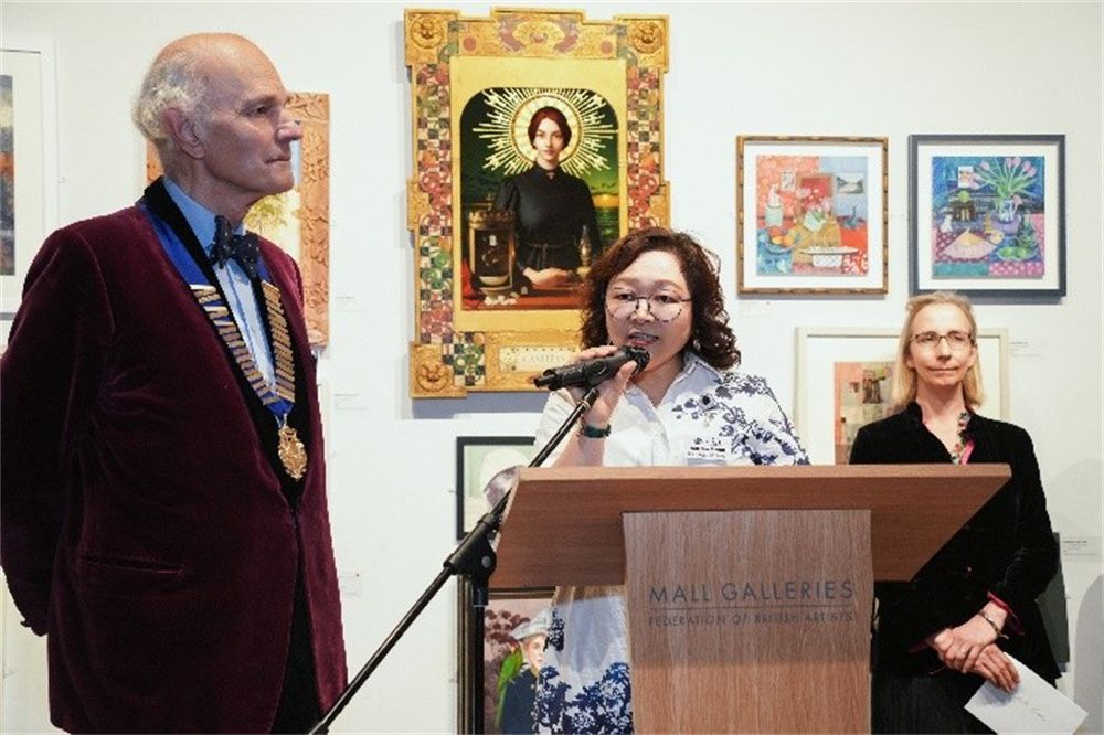【欧洲时报实习记者叶诗怡报道】2月26日晚,2026年英国皇家艺术学会(RBA)年度展览开幕式暨第三届“张怀存奖”颁奖典礼在伦敦著名艺术空间摩尔画廊(Mall Galleries)隆重举行。来自英国及国际艺术界的重要嘉宾、艺术家与文化机构代表等600余人齐聚一堂,共同见证当代艺术的多元表达与跨文化交流的深度交融。