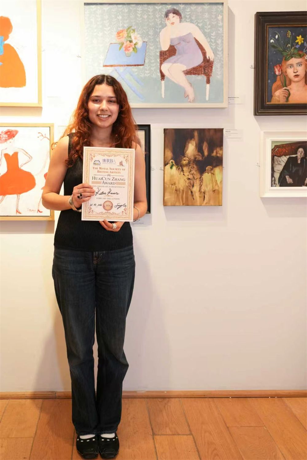 作为当晚的焦点环节,第三届“张怀存奖”备受瞩目。该奖项由英国皇家艺术家学会终身院士、旅英华人画家、诗人、儿童文学作家张怀存设立,旨在鼓励富有创造力、独立精神与时代视野的艺术家。自创立三年来,该奖项不仅成为皇家艺术家学会年展的亮点之一,为艺术家提供认可与支持,更成为连接中英、推动英国与国际艺术界深入对话的重要纽带。