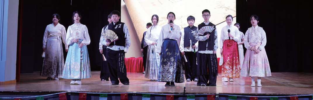 新春联欢会中,在校学生带来了形式多样的精彩表演,既呈现了中国文化的多样风采,也展现了学生们的艺术活力,赢得现场观众阵阵掌声。