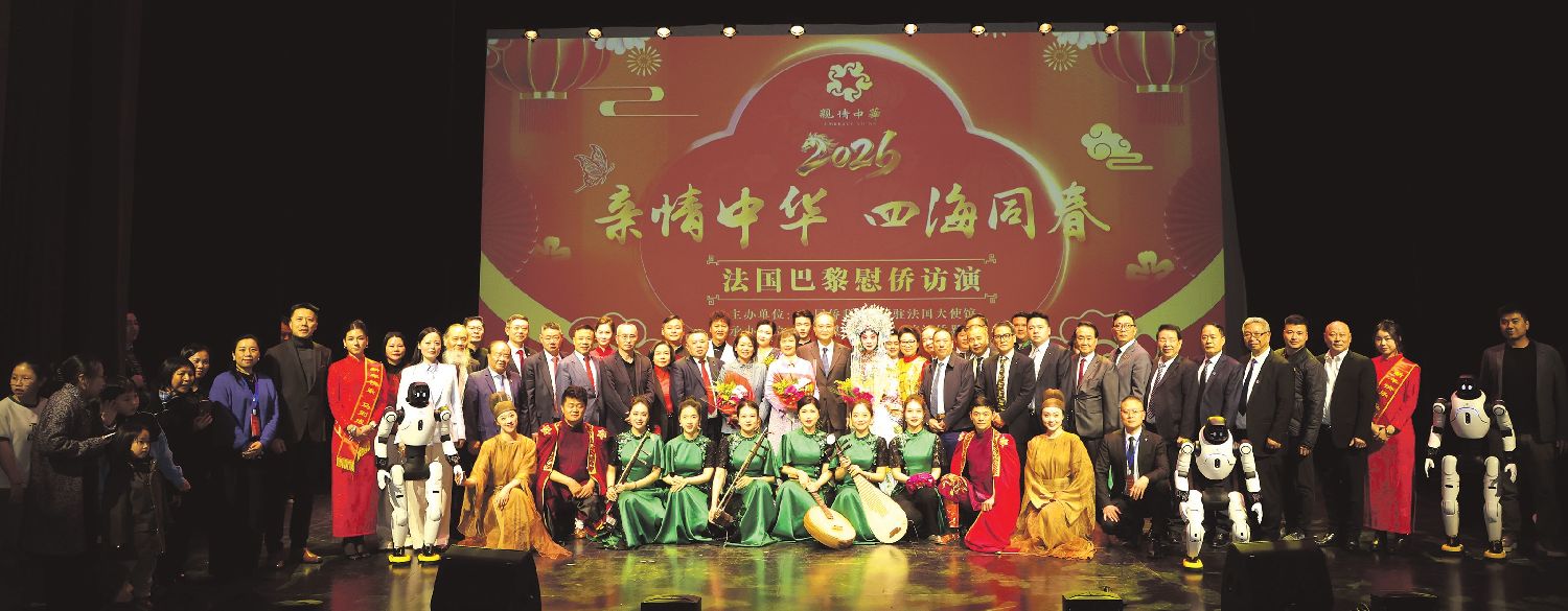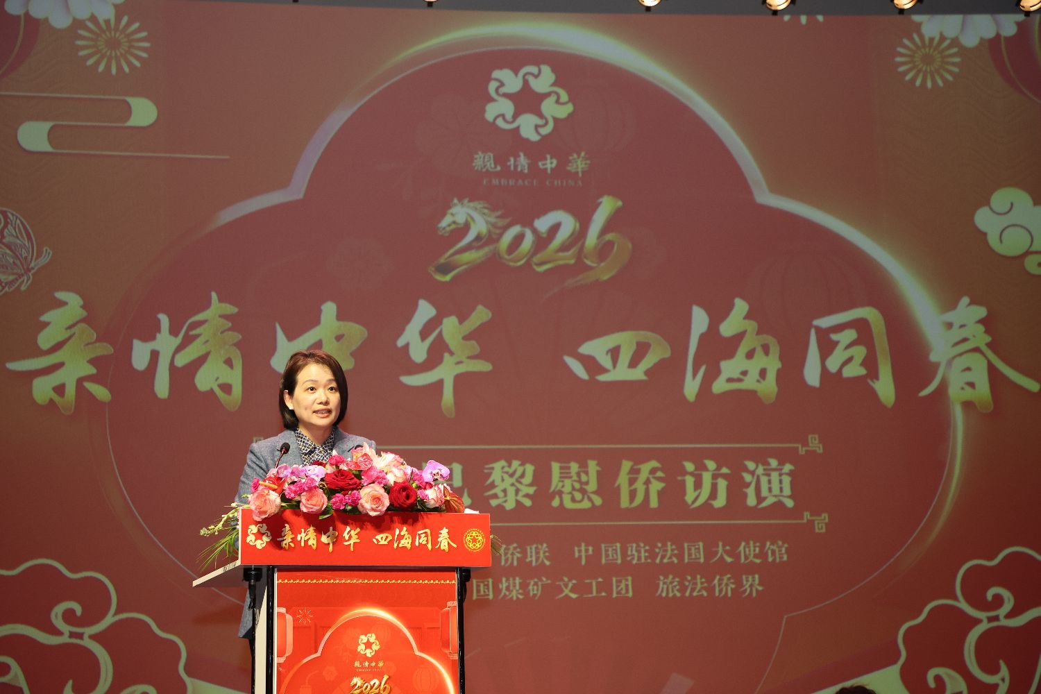 【欧洲时报记者马行健巴黎报道】当地时间3月5日,由中国侨联与中国驻法国大使馆主办,中国煤矿文工团与旅法侨界承办的2026“亲情中华·四海同春”慰侨访演巴黎站演出,在位于巴黎大区的伊西莱穆利诺(Issy-les-Moulineaux)市会议宫举行。中国驻法国大使邓励及夫人张华、中国侨联文化交流部副部长车壮丽、法国华侨华人会主席蔡君柱等出席活动,800余名来自中法各界和旅法侨界的嘉宾参加活动,欧洲时报社副社长谢添代表欧洲时报出席活动。