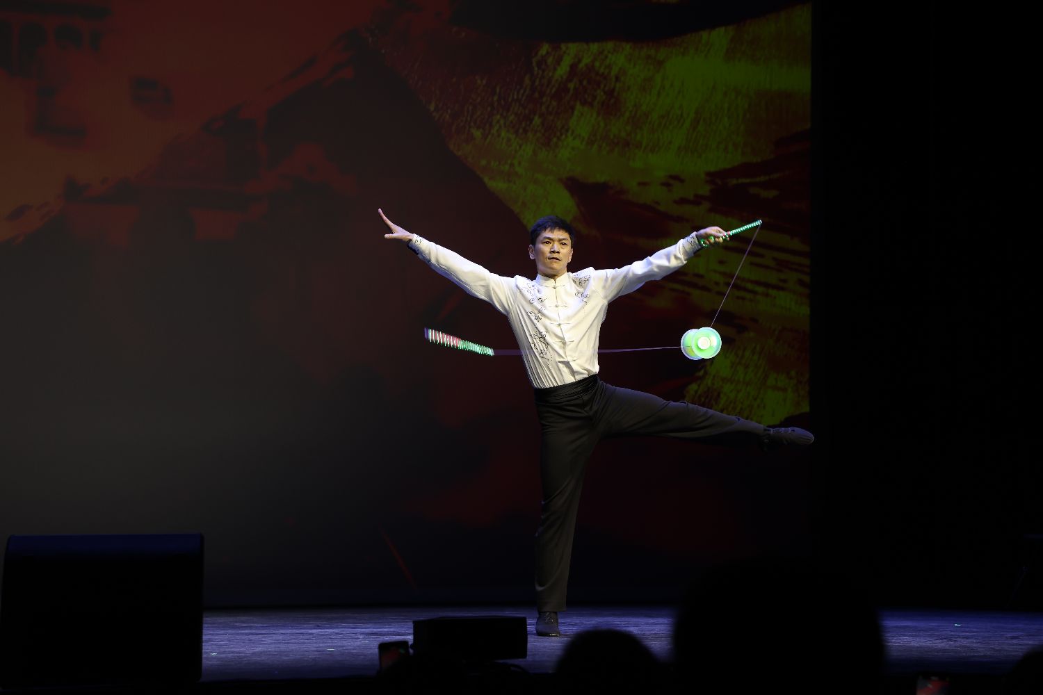 一曲民乐合奏《我的祖国》拉开演出大幕,瞬间将全场观众带回了魂牵梦绕的故土。在持续一个多小时的演出过程中,艺术家们表演了包括民乐合奏、歌唱、板胡、抖空竹、京剧、舞蹈、变脸等在内的十余个节目。京剧表演艺术家胡文阁以一曲《梨花颂》惊艳全场,婉转唱腔与典雅身段尽显国粹神韵,令观众如痴如醉;青年演员方书剑深情演唱法文经典《玫瑰人生》,向中法友谊致敬;张夏悦带来的《寻香茉莉》改编自经典名曲,旋律雅致且充满东方魅力;《挂红灯》《青春舞曲》等歌曲点燃全场的节日活力。演出的最后,全场演员与观众合唱《我和我的祖国》,将气氛推向最高潮。