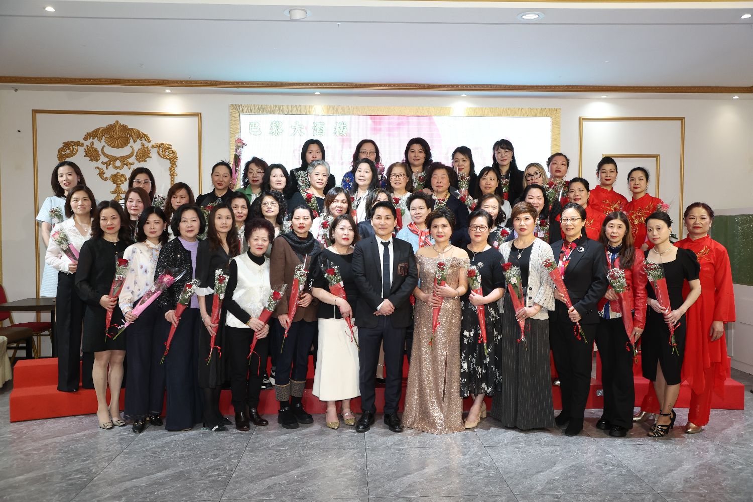 活动现场,胡忠光向现场的所有女性赠送了玫瑰花,并登台向全场人员祝酒,随后法国浙江同乡会女性成员登台表演了舞蹈等节目。此外,现场还进行了多个越剧曲目的表演。
