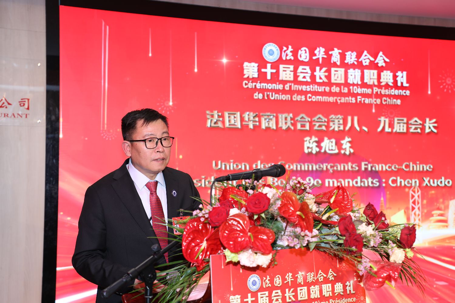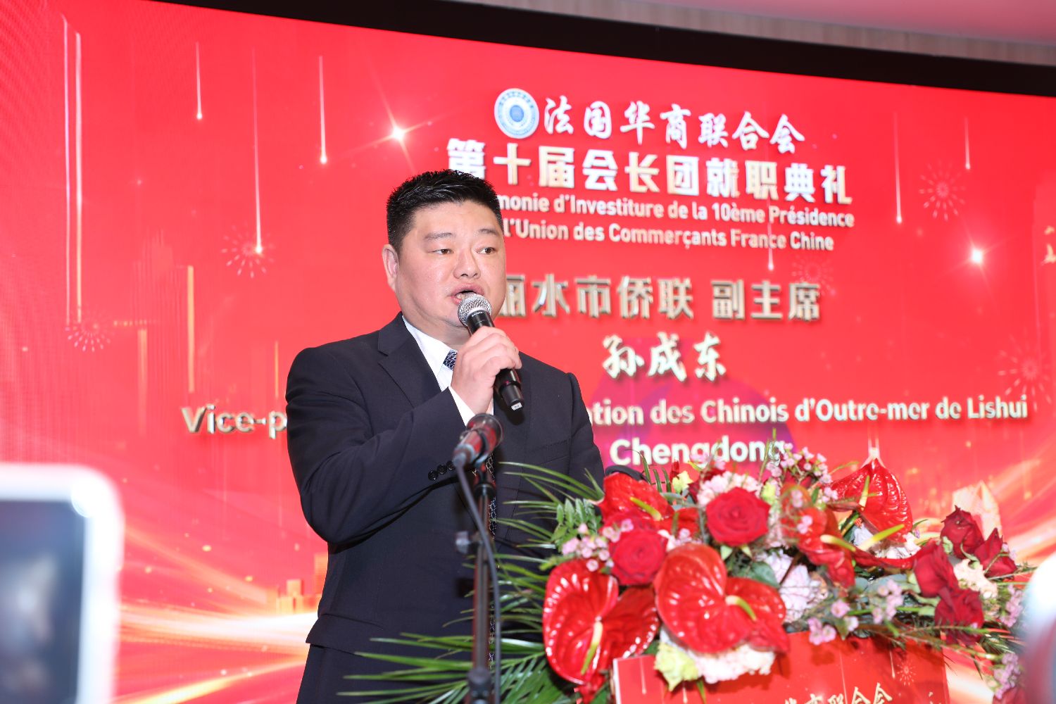 丽水市侨联副主席孙成东代表丽水市侨联和邹浙清主席向第十届会长团就职表示祝贺。他指出,法国华商联合会自成立以来,始终秉持团结互助、服务侨胞、促进融入的宗旨,在维护华商权益、弘扬中华文化、推动中法经贸合作等方面取得了显著成绩。陈旭东会长任期内,带领商会积极作为,为家乡建设和侨界发展作出了积极贡献,赢得了广泛赞誉。新一届会长团在孙建丽会长的带领下,必将承前启后,继往开来,不断开创会务工作新局面,谱写华商发展新篇章。