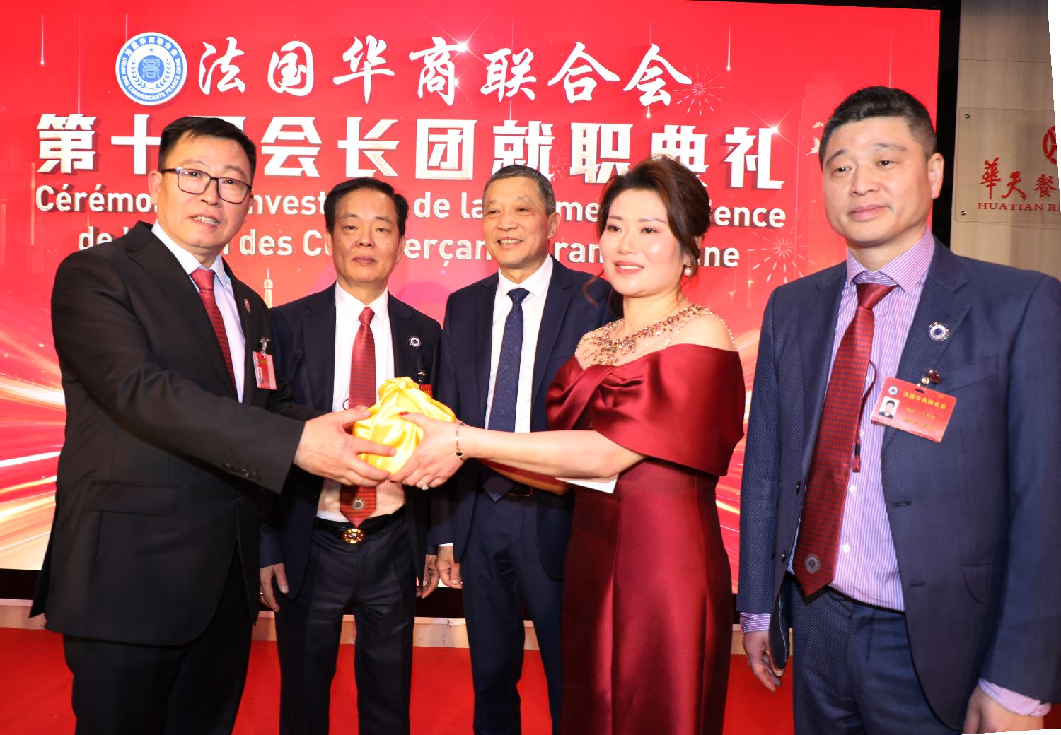 【欧洲时报记者黄冠杰巴黎报道】3月11日晚,法国华商联合会第十届会长团就职典礼在巴黎华天中国城大酒店举行。孙建丽就任会长,吴灵军任执行会长,林银辉任常务会长,厉毅胜任第一副会长,邱冠厚任监事长,吴海灵任财务长,徐小东任秘书长,陈丽青任妇女主任。中国驻法使馆领侨处副主任张慧舞、秘书查君酽,法国国民议会议员、国民议会外交委员会主席布鲁诺·福克斯(Bruno FOCHS),浙江省政协常委、侨联副主席卓旭光,浙江省海外联谊会副会长任俐敏,欧洲时报常务副社长谢添等嘉宾以及来自法国、意大利等地社团和侨商代表300余人共同见证这一时刻。
