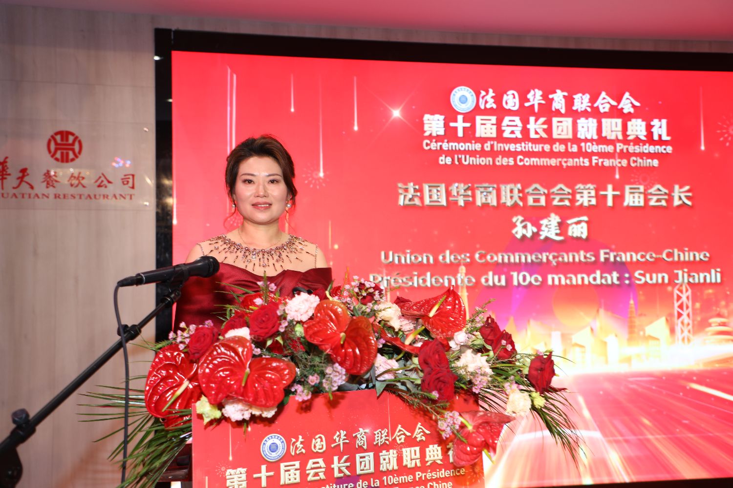 孙建丽在就职演说中,对历任会长表示感谢。她表示,作为接棒者,深知“会长”二字,不仅是一个头衔,更是一份沉甸甸的责任,是一张必须答好的“考卷”。作为旅法侨界为数不多的女性会长之一,自己深感荣幸,也看到了旅法侨社日益蓬勃的“她力量”。她将以女性的细腻、坚韧和务实,团结带领第十届会长团的全体成员,在传承中创新,在团结中奋进。未来将为会员搭建更务实的交流平台,继续发挥桥梁纽带作用,助推家乡更多的“品牌出海”,让法国的浪漫与创新通过联合会的努力连接中国。我们将继续发扬爱国爱乡的优良传统,带领大家遵纪守法、诚信经营,积极回馈当地社会。我们要与旅法各兄弟侨团携手并肩,共同维护侨社的和谐,共同提升我们华侨华人的整体形象,让法国社会看到新一代华商的责任与担当,做好侨社形象的“代言人”。与大家一道,同心协力,继往开来,在这个充满挑战也充满机遇的时代,书写法国华商联合会更加精彩的篇章。