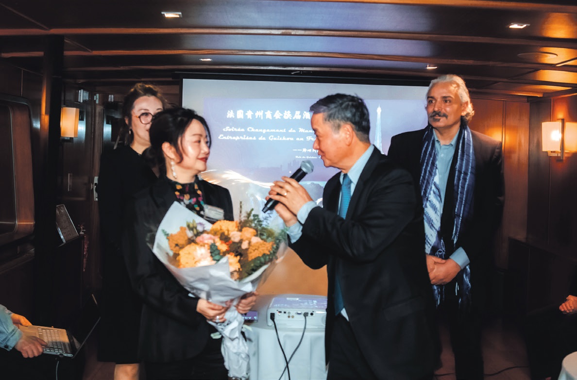 活动当晚,嘉宾们在塞纳河的迷人夜色中共享晚宴,畅叙乡情。在备受瞩目的换届仪式环节,任期届满的李贵生会长深情回顾了任期内的各项工作与收获,并对所有支持者表达了由衷的感谢。随后,新任会长张竹女士正式就任,并发表了热情洋溢的就职演说。她以“感谢、合作、祝福”三个关键词为核心,首先向长期关心支持商会的各方、为商会奠定坚实基础的李贵生会长以及柯文、张庆华、张芃子三位副会长及全体会员的信任表达了诚挚谢意。展望未来,张竹会长提出致力于把商会打造成沟通贵州与法国的“桥梁”、促进中法民间交流的“交流台”以及连接不同行业企业家的“合作台”,通过多方联动,共同促进中法在经贸、文化、旅游等领域的深度合作。