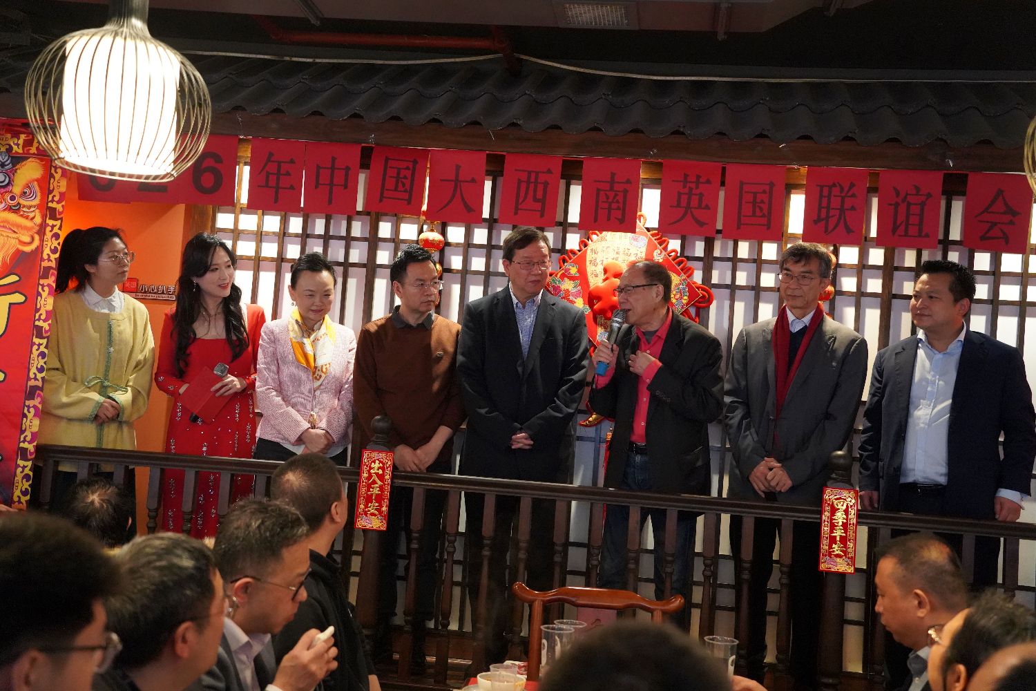 中国驻英国大使馆王滨滨副主任在致辞中代表使馆向中国大西南英国联谊会及各成员侨团致以诚挚问候和新春祝福。他表示,从2007年到今天,火锅联谊活动已经走过了整整二十个年头。二十年薪火相传,二十年乡情不断。大家用一锅滚烫的麻辣火锅,不仅温暖了在英游子的心,更架起了一座沟通中英、连接乡情的桥梁。他进一步提到,更难能可贵的是,大家虽身在海外,却始终心系桑梓,积极关心和支持祖(籍)国的经济社会发展和科技进步,并在推动中英经贸往来、促进民间务实合作,以及弘扬中华优秀传统文化方面,做了大量实实在在、富有成效的工作,在英伦三岛产生了积极而广泛的影响。这种爱国爱乡、开拓进取的精神,令人敬佩。他希望大家继续做中英友谊的民间使者,用在英国的奋斗故事,用地道的家乡美味,让更多的英国朋友了解真实、立体、全面的中国,了解丰富多彩、热情好客的大西南。致辞最后,他强调,中国驻英国大使馆将永远是大家在英国最温暖的家、最坚实的后盾,并将继续为大家提供优质的领事服务和协助。
