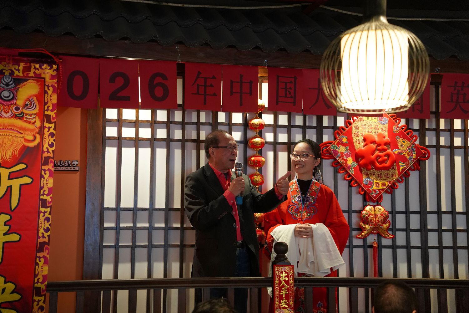 活动当天现场张灯结彩、年味浓厚。伴随着铿锵有力的鼓点,白眉舞狮表演拉开活动序幕。舞狮队在热烈的掌声中完成“采青”环节,并揭开寓意吉祥的新春祝福卷轴,为在场嘉宾送上新春美好祝愿,将现场气氛迅速点燃。随后,中国大西南英国联谊会的会长们共同向现场嘉宾和朋友拜年,致以节日祝福。