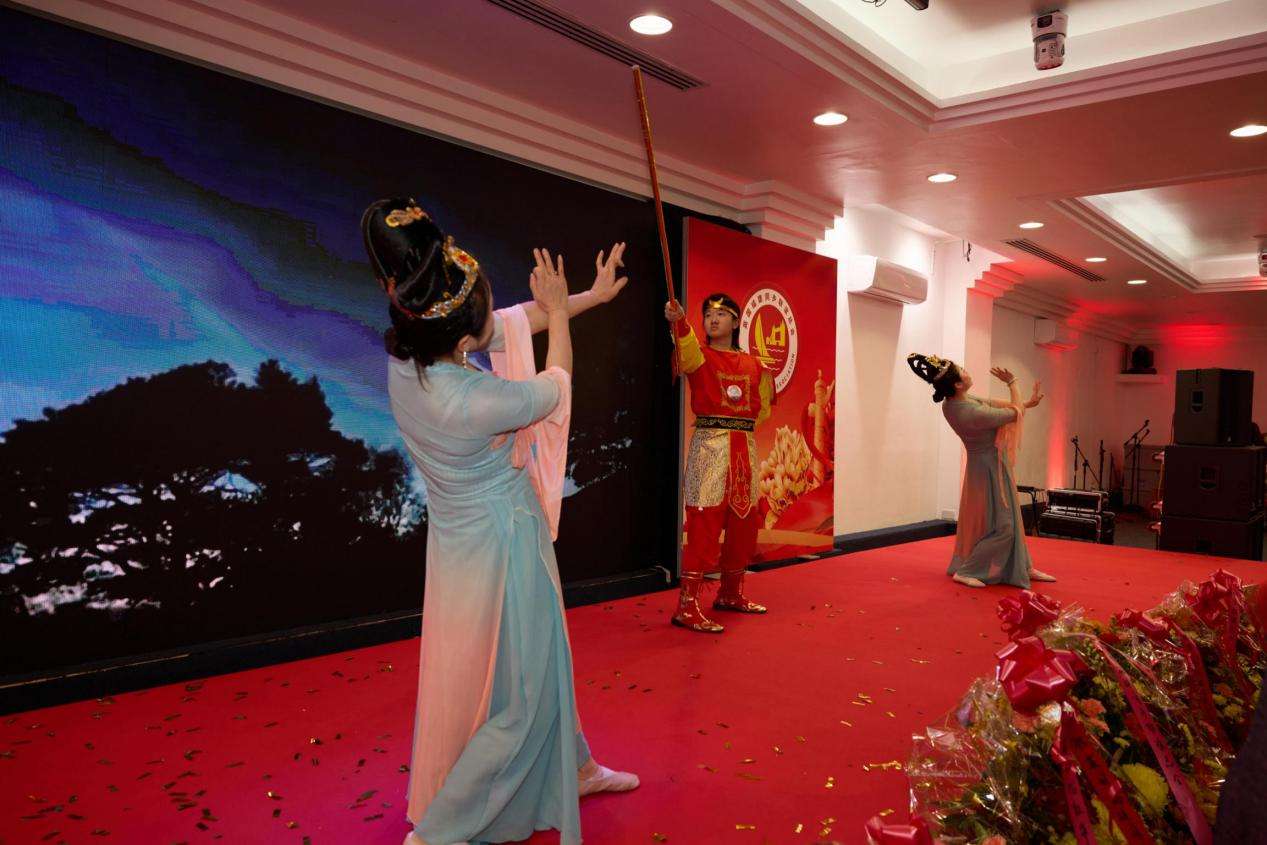 活动还安排了文艺表演。由The London Lion Dance带来的舞狮表演作为开场节目;荷兰华人艺术团团长、女高音歌唱家籍晓岚演唱了《我爱你中国》和《今夜无人入睡》;“毛派变脸”第三代传人姚则浩表演川剧《变脸》。