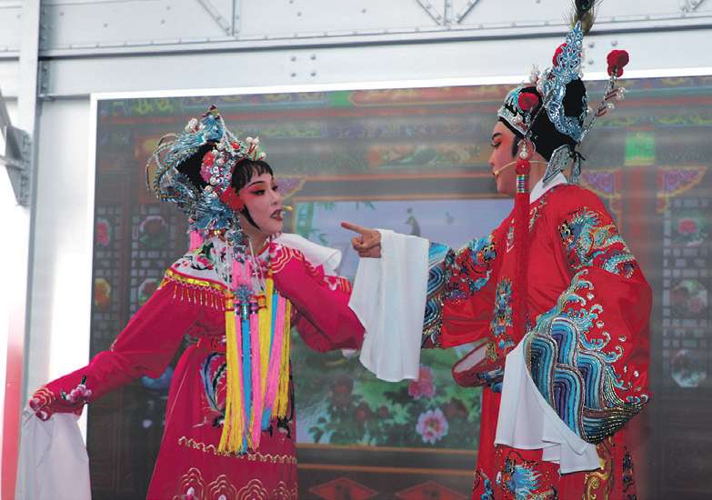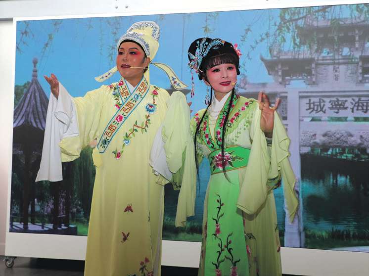 张瑜(右)和郑月华表演《何文秀·心连心》。