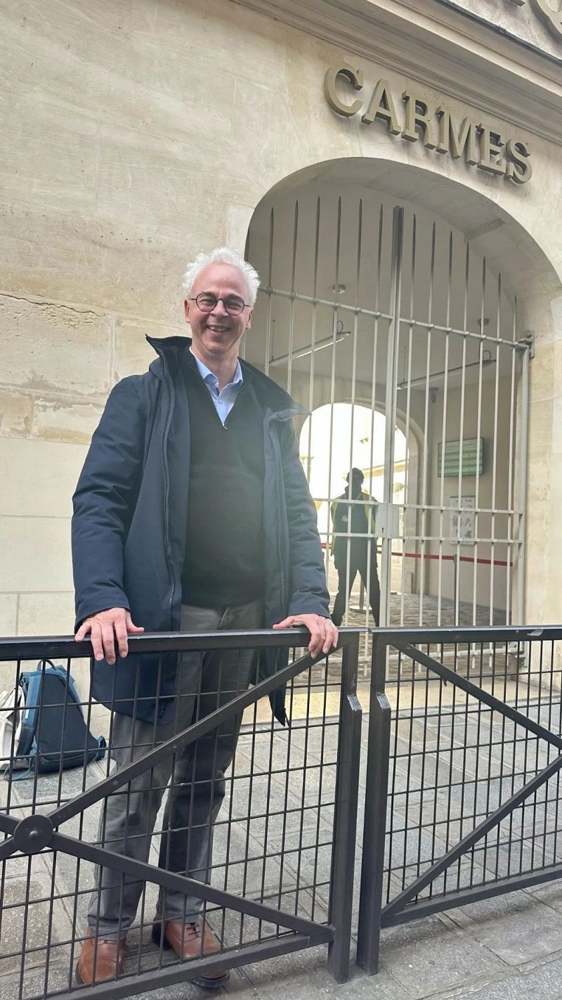 林国在巴黎天主教大学门口。(图片来源:欧洲时报记者孔帆 摄)