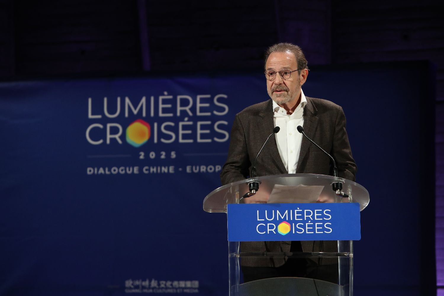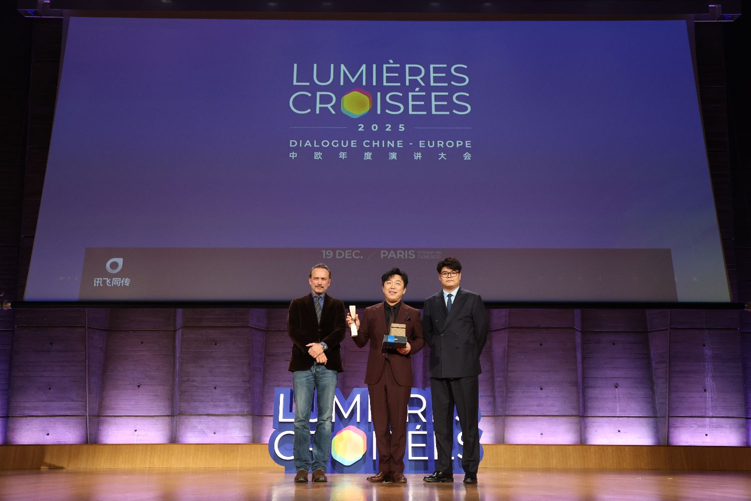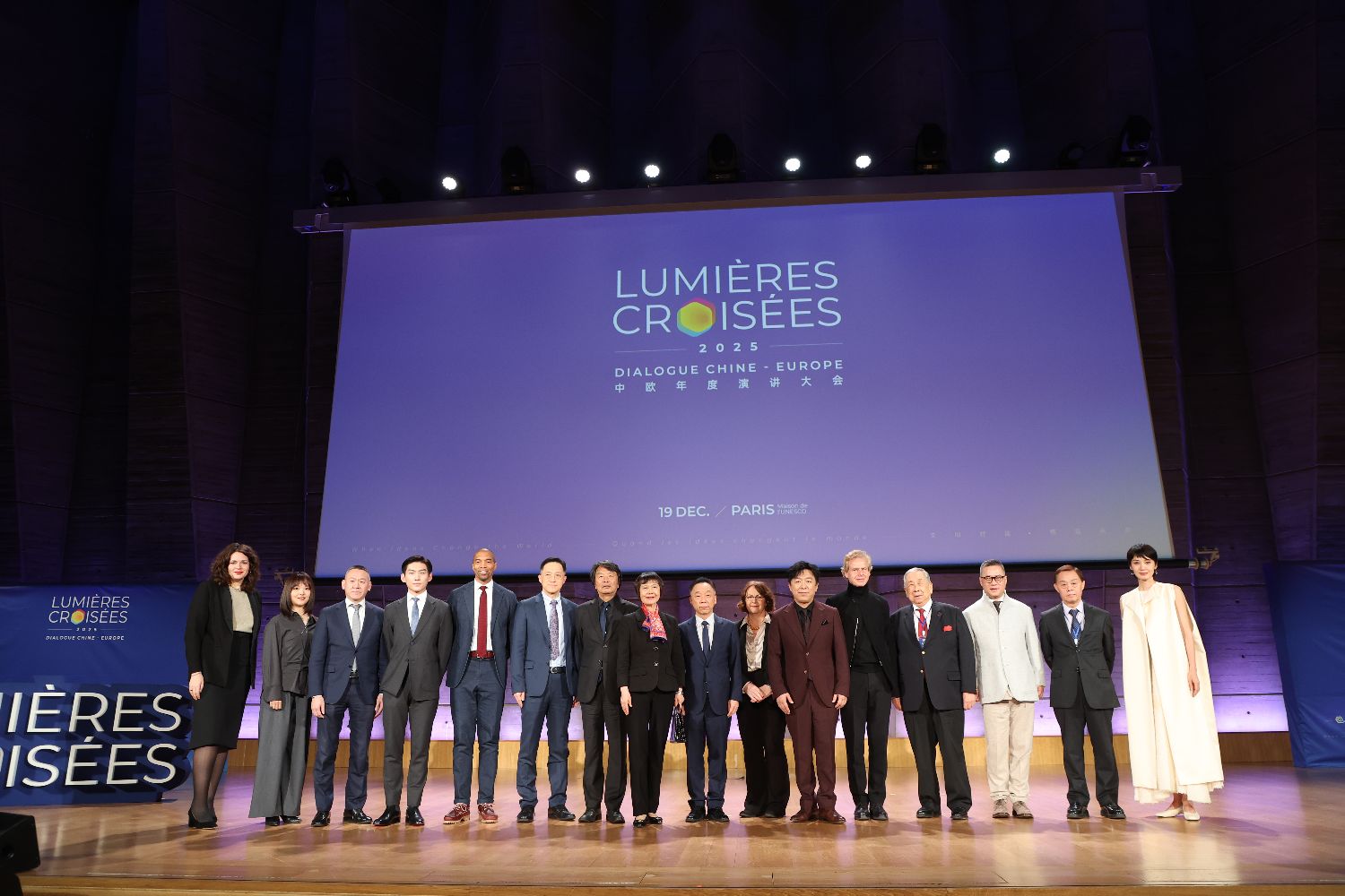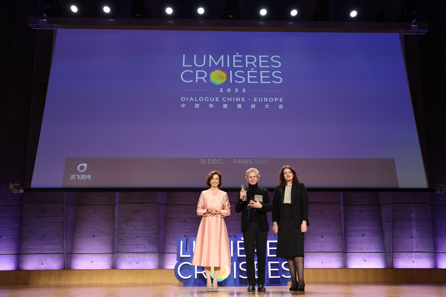 【欧洲时报记者马行健巴黎报道】当地时间12月19日,位于巴黎的联合国教科文组织总部嘉宾云集,热闹非凡,由欧洲时报文化传媒集团联合金锁出海商务咨询公司联合主办、巴黎中国红超市作为晚宴独家冠名、中国南方航空作为航空合作伙伴、景德镇陶瓷艺术品牌御鉴无瑕作为艺术合作伙伴、科大讯飞提供官方语音及翻译支持、卡雷大酒店(Le Grand Hôtel Cayré)作为官方指定酒店,以及ICELANDIC作为官方指定饮用水的“文明对话·预见未来”2025中欧年度演讲大会(Lumières croisées–Dialogue Chine-Europe)在这里成功举行。欧洲时报文化传媒集团总裁、欧洲时报社社长钟诚,中国常驻联合国教科文组织大使衔代表杨新育、中国驻法国大使夫人张华、法国前文化部长、联合国教科文组织前总干事奥德蕾·阿祖莱,金锁出海商务咨询公司CEO范宇轩等出席活动,法国作家马克·李维(Marc Levy),知名中国文化学者梁冬,大英博物馆亚洲部主管霍吉淑(Jessica Harrison-Hall)、中国著名作家刘震云,法国精品行业联合会主席洛朗·布瓦洛(Laurent Boillot),中国知名演员、导演、中国电影家协会副主席黄渤,清华大学苏世民书院学生生活副院长孟启扬(Raphael X.Moffett)发表主旨演讲,来自中法、中欧及全球各地内的1300余名嘉宾及观众参加活动。