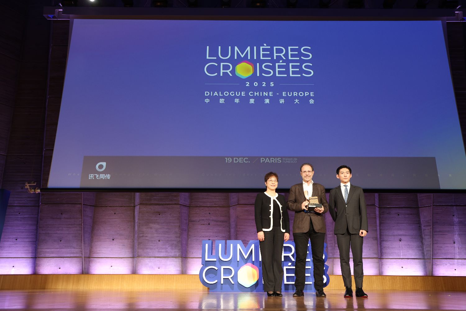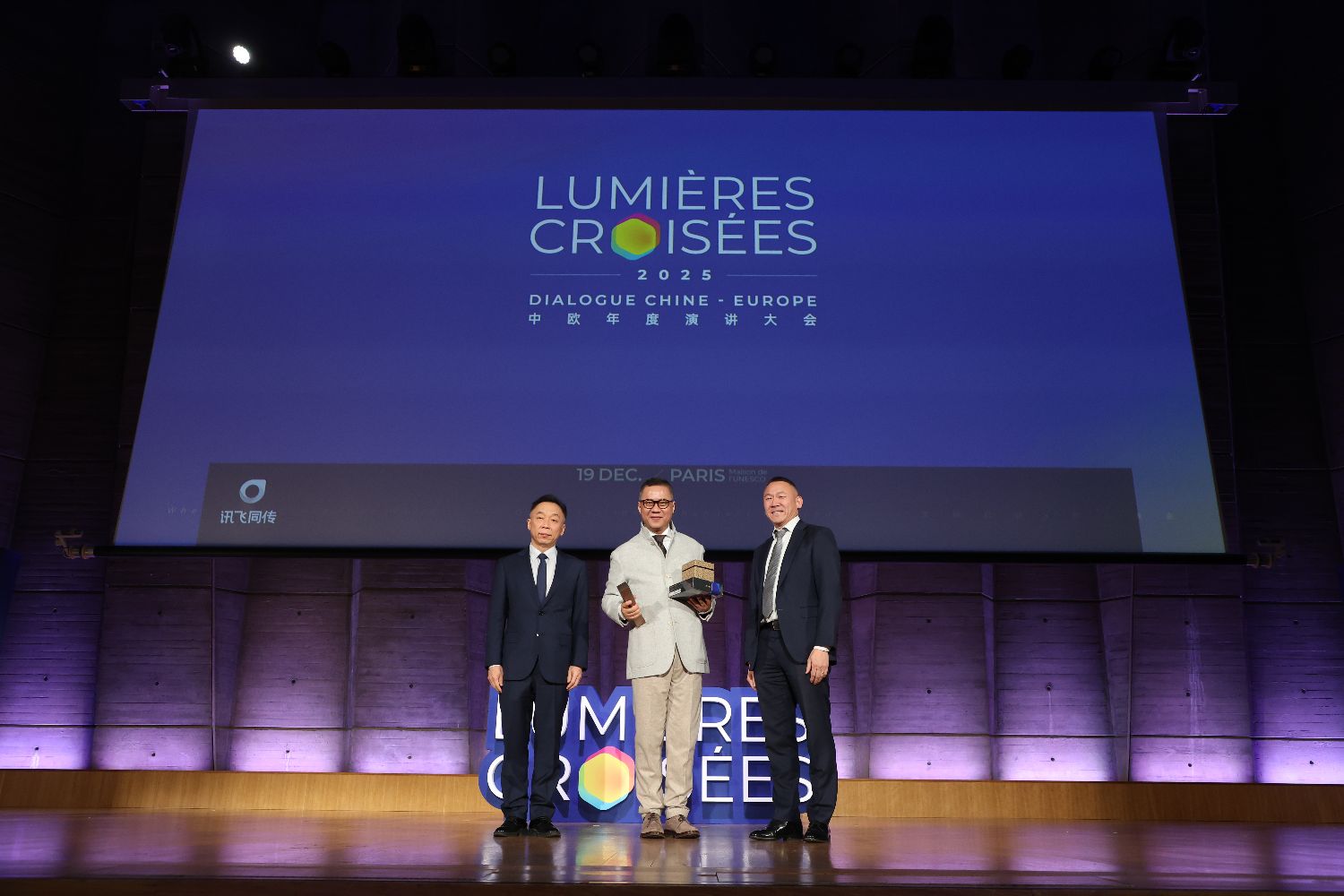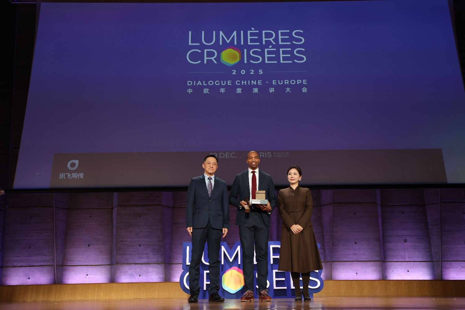 【欧洲时报记者马行健巴黎报道】当地时间12月19日,位于巴黎的联合国教科文组织总部嘉宾云集,热闹非凡,由欧洲时报文化传媒集团联合金锁出海商务咨询公司联合主办、巴黎中国红超市作为晚宴独家冠名、中国南方航空作为航空合作伙伴、景德镇陶瓷艺术品牌御鉴无瑕作为艺术合作伙伴、科大讯飞提供官方语音及翻译支持、卡雷大酒店(Le Grand Hôtel Cayré)作为官方指定酒店,以及ICELANDIC作为官方指定饮用水的“文明对话·预见未来”2025中欧年度演讲大会(Lumières croisées–Dialogue Chine-Europe)在这里成功举行。欧洲时报文化传媒集团总裁、欧洲时报社社长钟诚,中国常驻联合国教科文组织大使衔代表杨新育、中国驻法国大使夫人张华、法国前文化部长、联合国教科文组织前总干事奥德蕾·阿祖莱,金锁出海商务咨询公司CEO范宇轩等出席活动,法国作家马克·李维(Marc Levy),知名中国文化学者梁冬,大英博物馆亚洲部主管霍吉淑(Jessica Harrison-Hall)、中国著名作家刘震云,法国精品行业联合会主席洛朗·布瓦洛(Laurent Boillot),中国知名演员、导演、中国电影家协会副主席黄渤,清华大学苏世民书院学生生活副院长孟启扬(Raphael X.Moffett)发表主旨演讲,来自中法、中欧及全球各地内的1300余名嘉宾及观众参加活动。