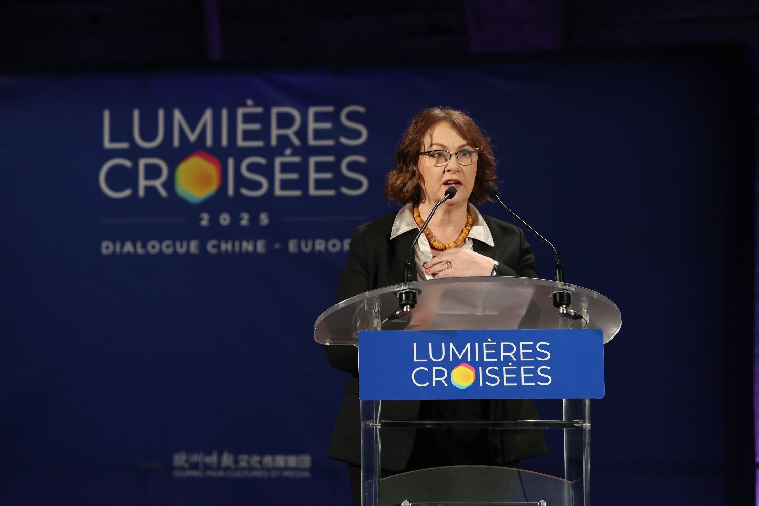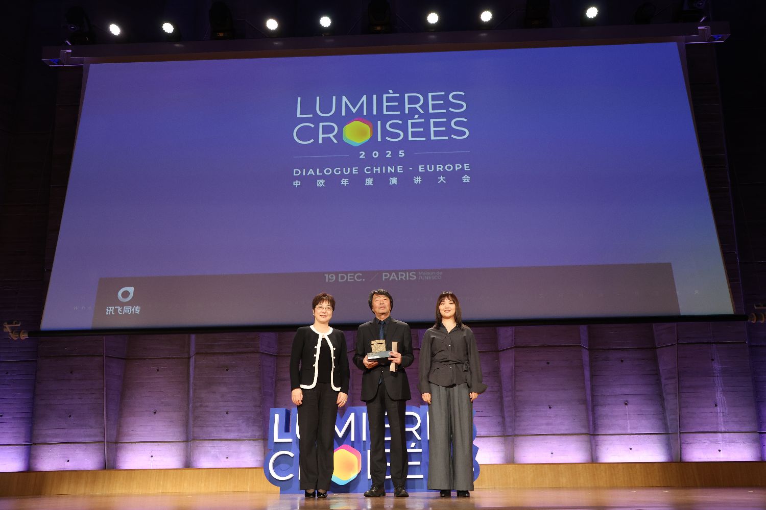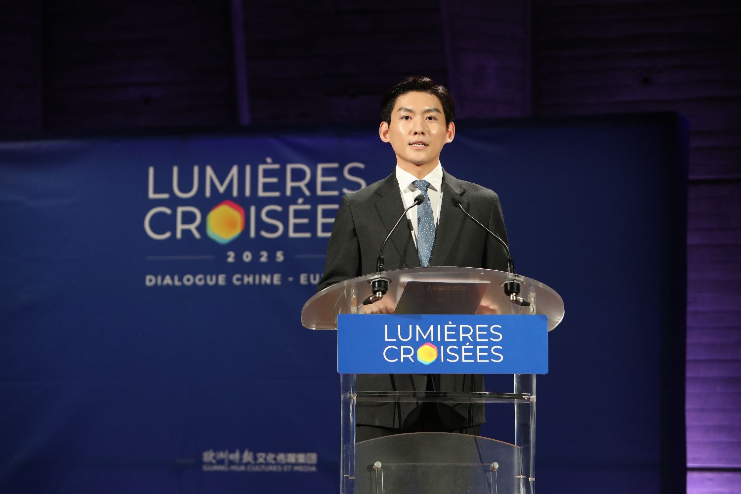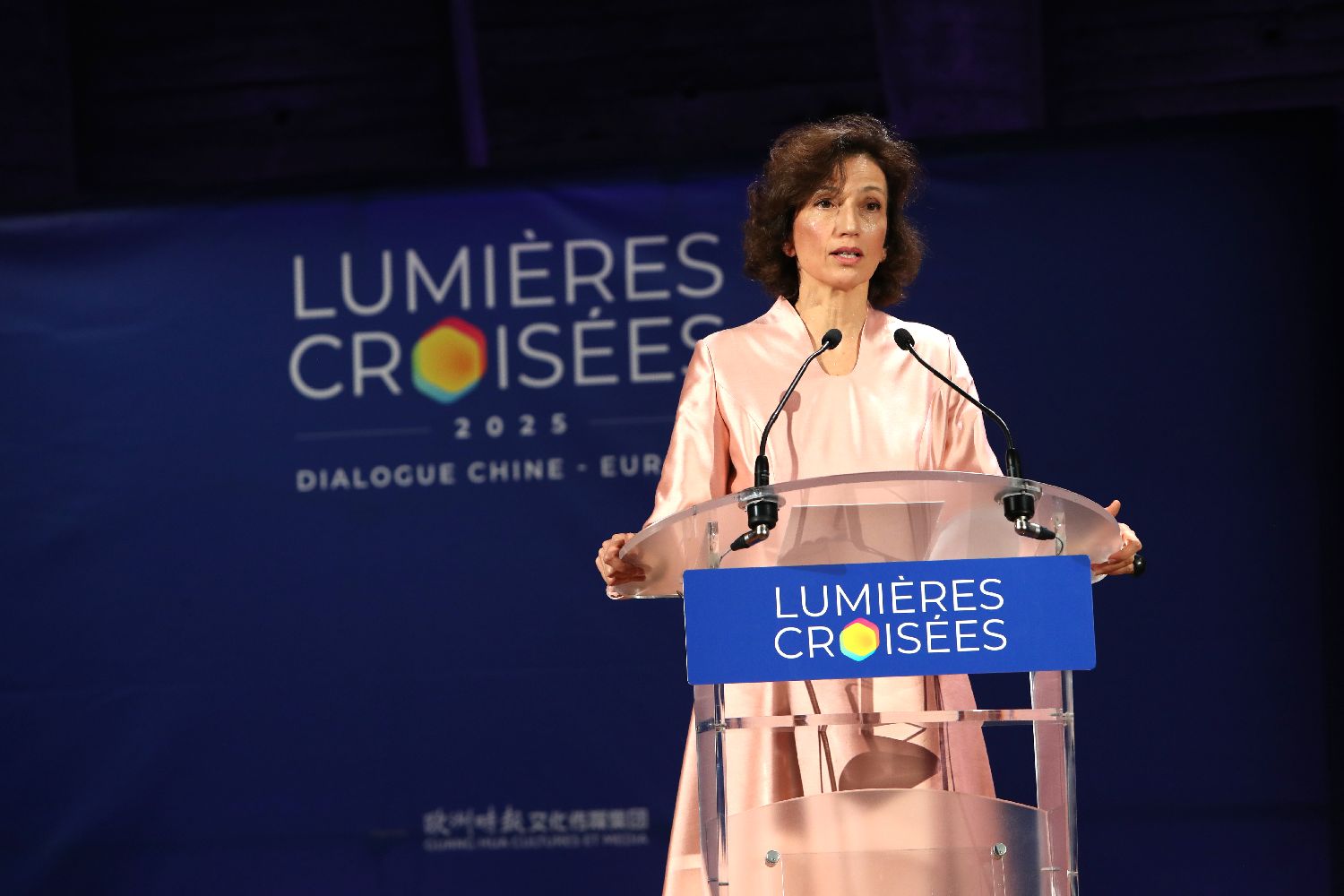 【欧洲时报记者马行健巴黎报道】当地时间12月19日,位于巴黎的联合国教科文组织总部嘉宾云集,热闹非凡,由欧洲时报文化传媒集团联合金锁出海商务咨询公司联合主办、巴黎中国红超市作为晚宴独家冠名、中国南方航空作为航空合作伙伴、景德镇陶瓷艺术品牌御鉴无瑕作为艺术合作伙伴、科大讯飞提供官方语音及翻译支持、卡雷大酒店(Le Grand Hôtel Cayré)作为官方指定酒店,以及ICELANDIC作为官方指定饮用水的“文明对话·预见未来”2025中欧年度演讲大会(Lumières croisées–Dialogue Chine-Europe)在这里成功举行。欧洲时报文化传媒集团总裁、欧洲时报社社长钟诚,中国常驻联合国教科文组织大使衔代表杨新育、中国驻法国大使夫人张华、法国前文化部长、联合国教科文组织前总干事奥德蕾·阿祖莱,金锁出海商务咨询公司CEO范宇轩等出席活动,法国作家马克·李维(Marc Levy),知名中国文化学者梁冬,大英博物馆亚洲部主管霍吉淑(Jessica Harrison-Hall)、中国著名作家刘震云,法国精品行业联合会主席洛朗·布瓦洛(Laurent Boillot),中国知名演员、导演、中国电影家协会副主席黄渤,清华大学苏世民书院学生生活副院长孟启扬(Raphael X.Moffett)发表主旨演讲,来自中法、中欧及全球各地内的1300余名嘉宾及观众参加活动。