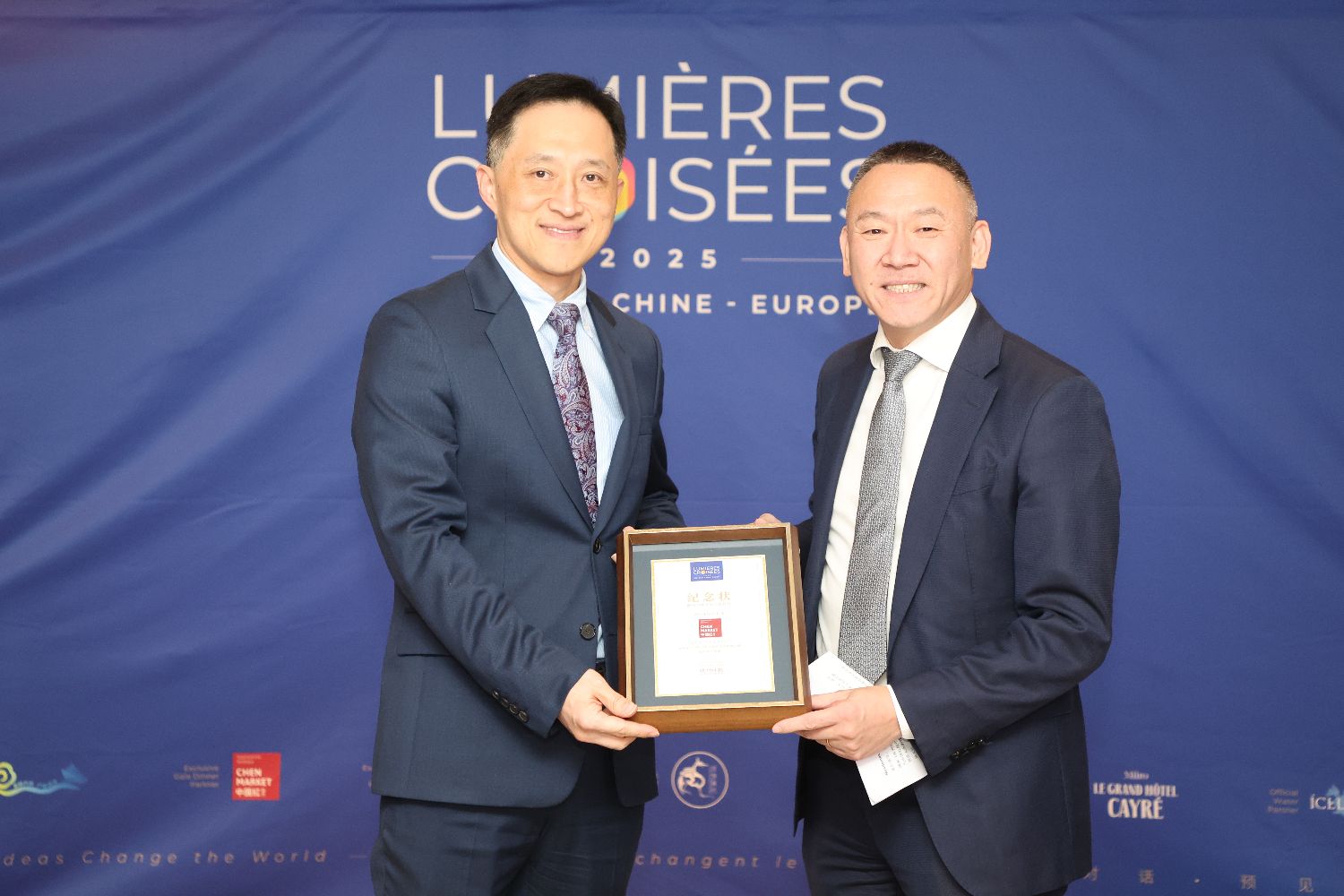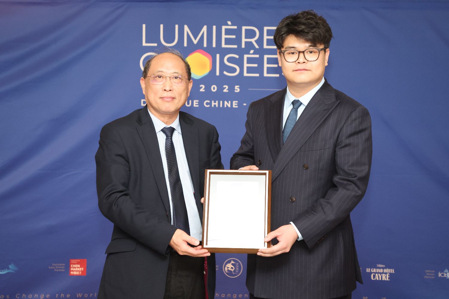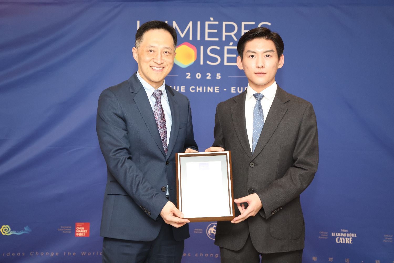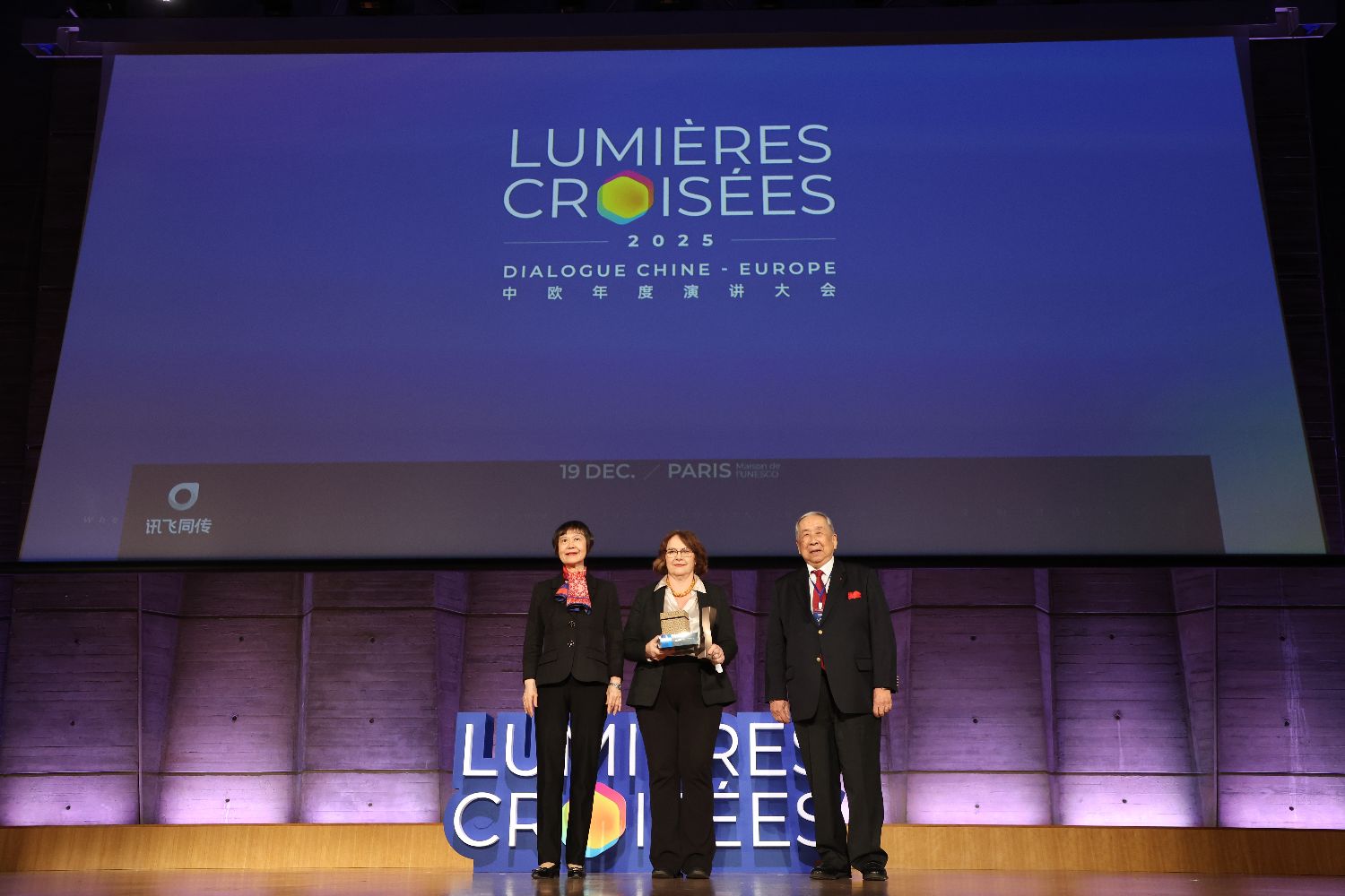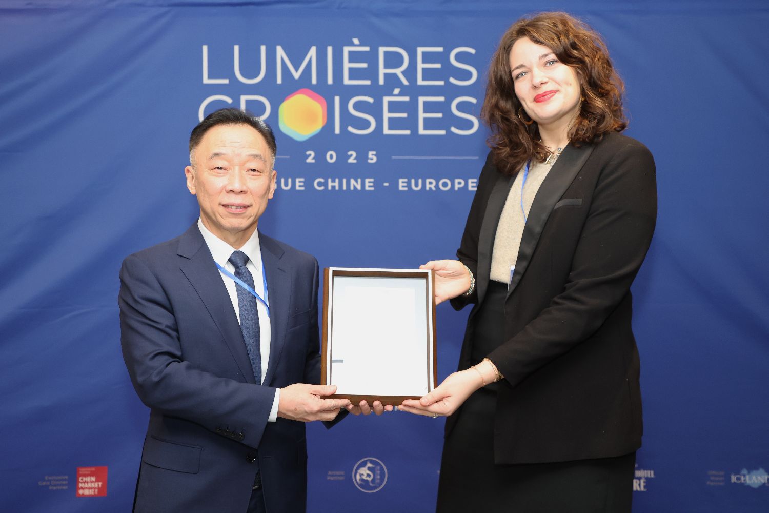 活动进行期间,还举办了“2025中欧友好影响力年度盛典”颁发典礼,钟诚,杨新育,张华,奥德蕾·阿祖莱,范宇轩,欧洲时报社常务副社长谢添,巴黎中国红超市董事长陈东晓,中国驻法国大使馆前外交官汪华,中国南方航空巴黎营业部销售经理张琳,卡雷大酒店商务总监Camille Capracci,法国著名演员、导演、编剧、制作人文森特·佩雷斯,科大讯飞欧洲区负责人刘彦楠、御鉴无瑕瓷器品牌负责人皮莉为演讲嘉宾颁发了奖杯和纪念品。