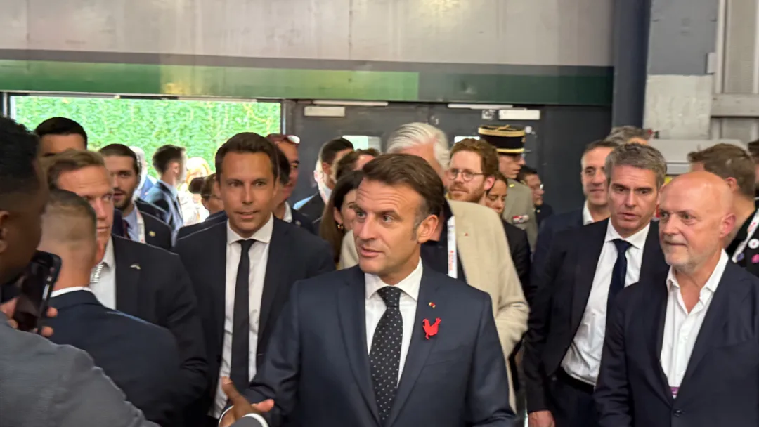 6月11日,法国总统马克龙出席科技创新展“VivaTech”活动。(图片来源:欧洲时报记者孔帆摄)