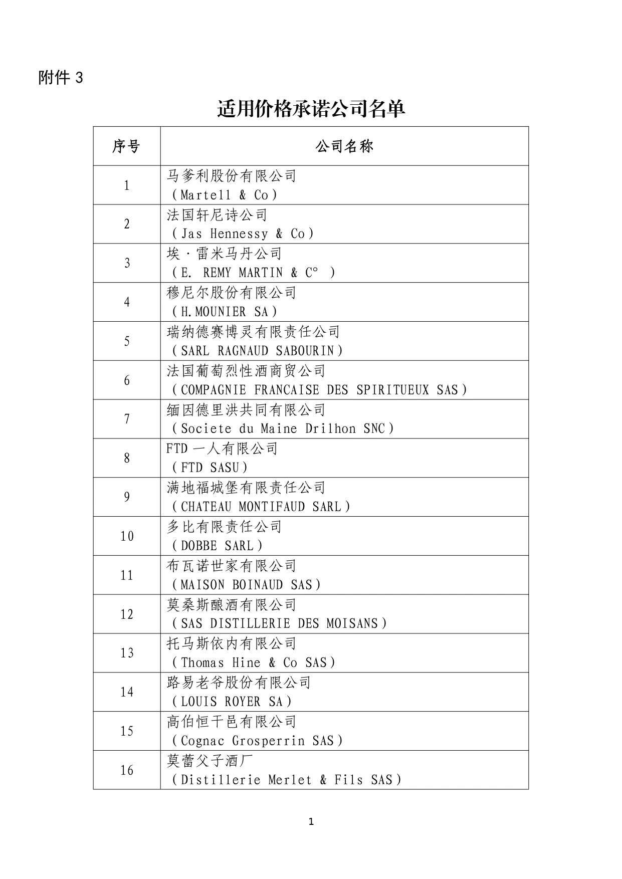 经过数月谈判,中国商务部周五4日公布了一份由34家白兰地生产商组成的名单,这些企业在去年初裁后规定时间内主动提交了价格承诺申请。经审查,对符合中国法律规定的价格承诺,调查机关决定予以接受。