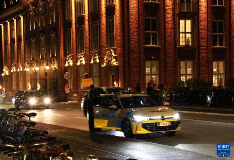 9月30日晚,警察在丹麦首都哥本哈根市中心巡逻。(图片来源:新华社)
