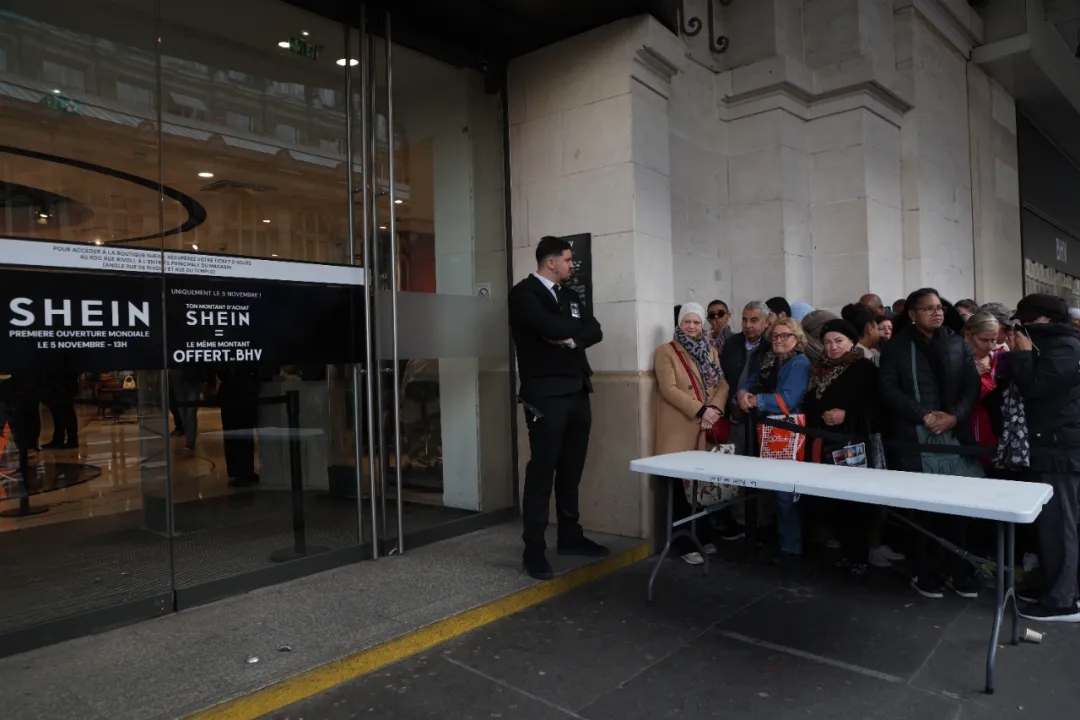 11月5日,SHEIN正式入驻巴黎BHV百货,不少法国民众等候进店购物。(图片来源:欧洲时报记者马行健 摄)