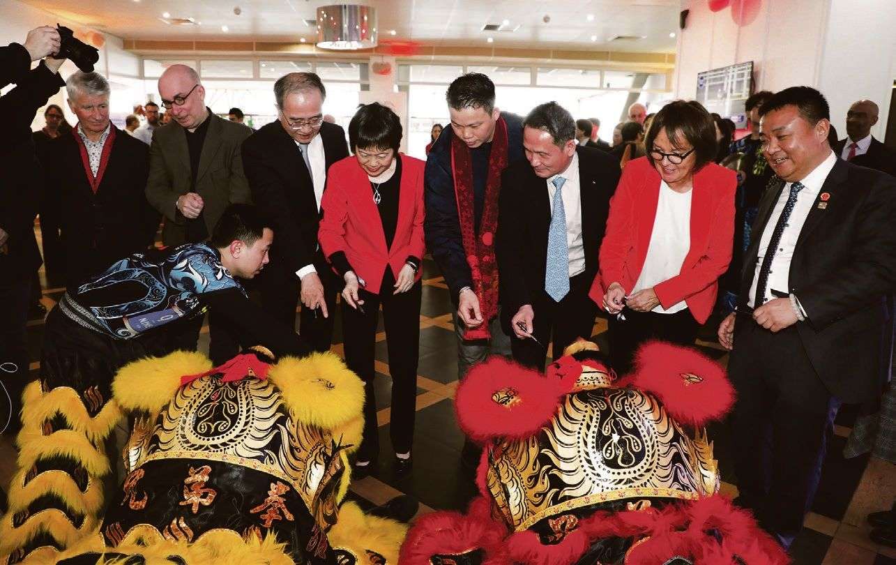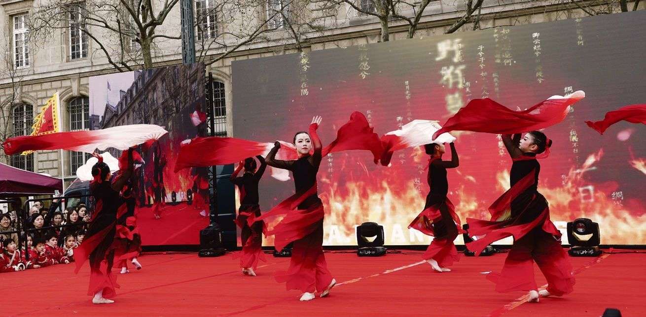 活动现场,嘉宾们共同鸣放礼花筒,漫天彩带礼花让共和国广场充满喜庆和欢乐。在奏放中法两国国歌、祥龙点睛、鞭炮燃放仪式后,现场嘉宾共同观看了法国本地舞龙舞狮团队和来自中国广东佛山的高凳舞狮队的表演。精彩的表演赢得阵阵掌声和欢呼,进一步将现场的气氛推向高潮。