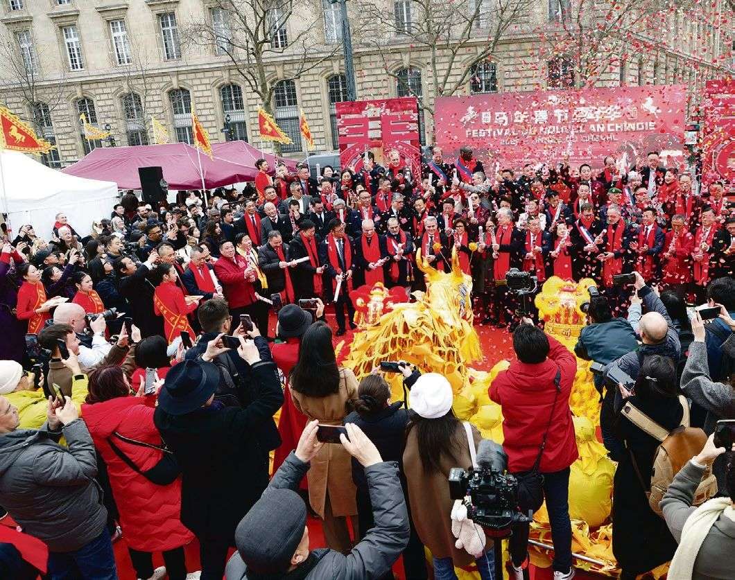 维尔区长在致辞中表示,今天的盛会是连日来马年春节庆祝活动的继续,我们相聚在一起,让节日的欢庆气氛再掀高潮。我们需要足够的时间来迎接所有的喜悦。我们将呈现春节这项中国传统文化的风采。在距离共和国广场不远,新设立的潘玉良广场刚刚挂牌,它讲述了早期中国人来到法国的故事,也重现了中国社区给法国带来的影响。维尔区长还用中文祝愿大家“新年快乐”。