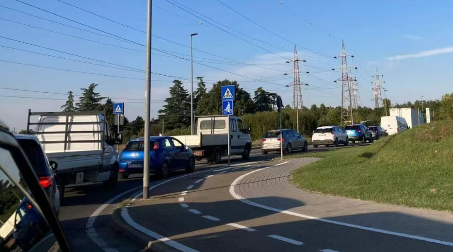 博洛尼亚周边道路出现严重交通拥堵。(图片来源:《欧洲时报》)