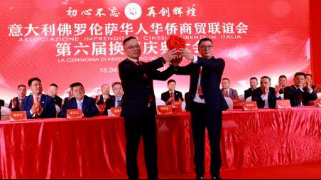 【欧洲时报记者尹名兴普拉托报道】4月18日,佛罗伦萨华人华侨商贸联谊会(以下简称“商贸会”)第六届换届庆典大会在普拉托举行。中国驻佛罗伦萨总领馆副总领事黄新华、领侨处主任周莅淼,意大利地方政界代表、旅意各地侨团负责人及社会各界嘉宾600余人齐聚一堂,共同见证商贸会薪火相传的重要时刻。