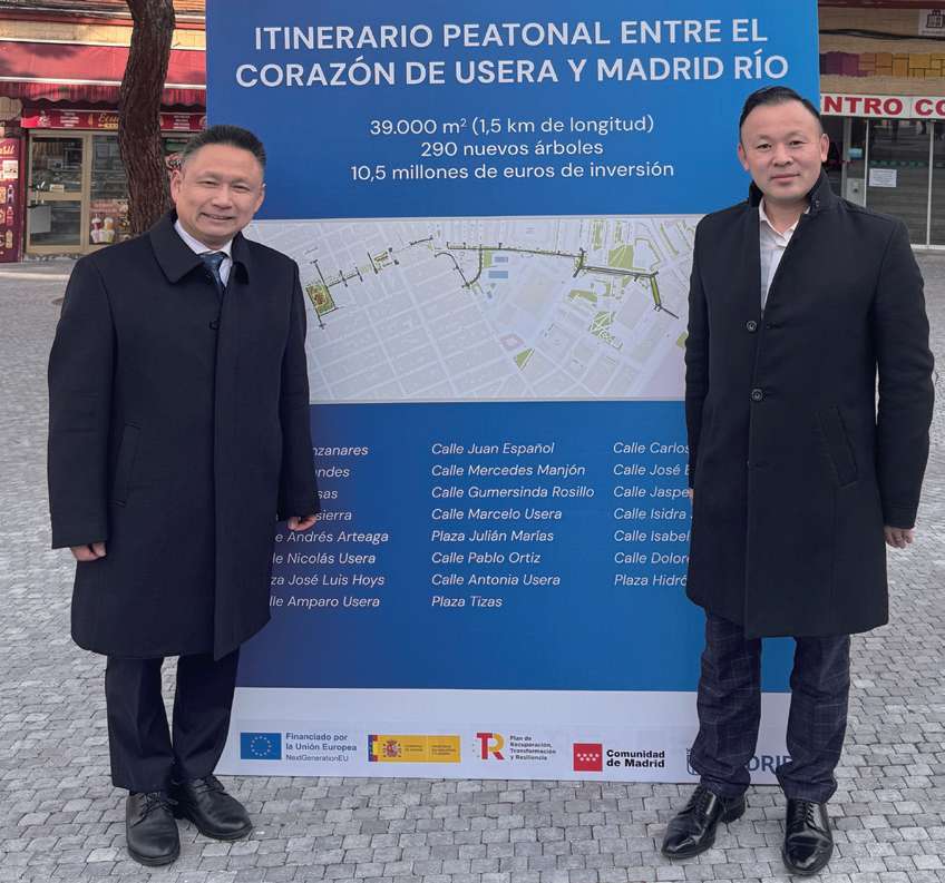 【欧洲时报讯】2026年1月13日,马德里市市长何塞·路易斯·马丁内斯-阿尔梅达(JoséLuis Martínez-Almeida)与市政建设与设施局局长帕洛玛·加西亚·罗梅罗(Paloma García Romero)、乌塞拉区区长索尼娅·塞阿(Sonia Cea),在中国城侨界联盟(USERA)主席陈恩官、中国城侨联执行会长兼秘书长曲夏、中国城侨联理事马德里爱华学校陈坤校长,以及西班牙青田同乡会代表朱晓海会长和张文祥秘书长的陪同下,共同参观了马德里乌塞拉唐人街全新竣工的步行道。